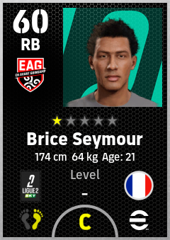 . Brice Seymour is a Right Back footballer from France who plays for En Avant Guingamp in eFootball 2026.