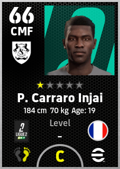 . P. Carraro Injai is a Center Midfielder footballer from France who plays for Amiens Sc in eFootball 2026.