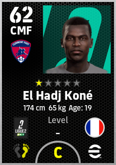 . El Hadj Koné is a Center Midfielder footballer from France who plays for Clermont Foot 63 in eFootball 2026.