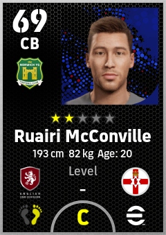 . Ruairi Mcconville is a Center Back footballer from Northern Ireland who plays for Norwich Yg in eFootball 2026.