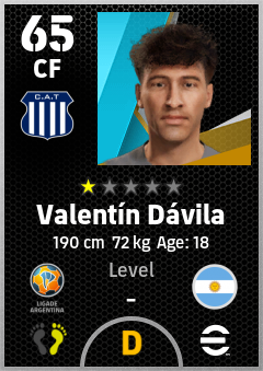 . Valentín Dávila is a Center Forward footballer from Argentina who plays for Córdoba Ab in eFootball 2026.