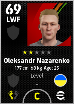 . Oleksandr Nazarenko is a Left Wing Forward footballer from Ukraine who plays for Free in eFootball 2026.