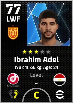 . Ibrahim Adel is a Left Wing Forward footballer from Egypt who plays for Nordsjælland Rg in eFootball 2026.