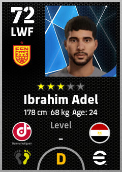 . Ibrahim Adel is a Left Wing Forward footballer from Egypt who plays for Nordsjælland Rg in eFootball 2026.
