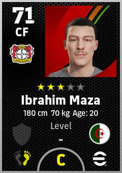 . Ibrahim Maza is a Center Forward footballer from Algeria who plays for Bayer 04 Leverkusen in eFootball 2026.
