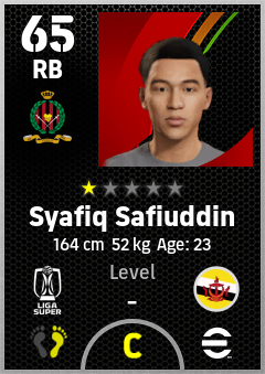 . Syafiq Safiuddin is a Right Back footballer from Brunei who plays for Dpmm Fc in eFootball 2026.