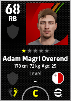 . Adam Magri Overend is a Right Back footballer from Malta who plays for Free in eFootball 2026.