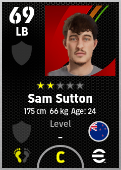 . Sam Sutton is a Left Back footballer from New Zealand who plays for Free in eFootball 2026.