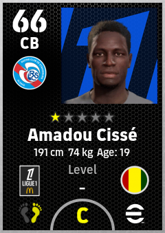 . Amadou Cissé is a Center Back footballer from Guinea who plays for Rc Strasbourg Alsace in eFootball 2026.
