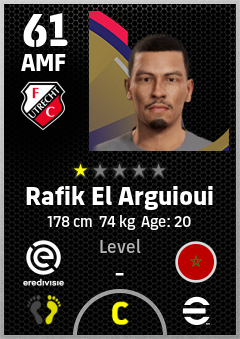 . Rafik El Arguioui is a Attacking Midfielder footballer from Morocco who plays for Fc Utrecht in eFootball 2026.