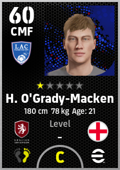 . H. O'grady-Macken is a Center Midfielder footballer from England who plays for Blackburn Bw in eFootball 2026.