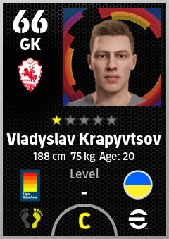 . Vladyslav Krapyvtsov is a Goalkeeper footballer from Ukraine who plays for Girona R in eFootball 2026.