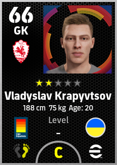 . Vladyslav Krapyvtsov is a Goalkeeper footballer from Ukraine who plays for Girona R in eFootball 2026.