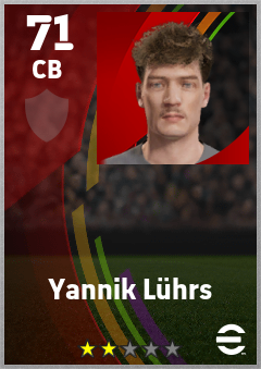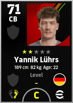 . Yannik Lührs is a Center Back footballer from Germany who plays for Free in eFootball 2026.