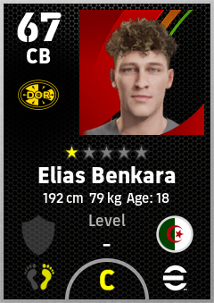 . Elias Benkara is a Center Back footballer from Algeria who plays for Borussia Dortmund in eFootball 2026.