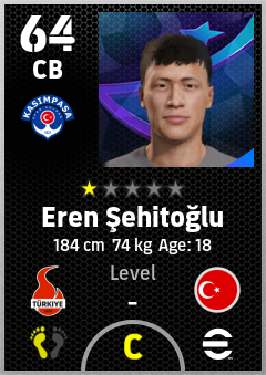 . Eren Şehitoğlu is a Center Back footballer from Türkiye who plays for Kasımpaşa Sk in eFootball 2026.