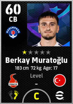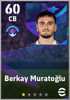 . Berkay Muratoğlu is a Center Back footballer from Türkiye who plays for Kasımpaşa Sk in eFootball 2026.