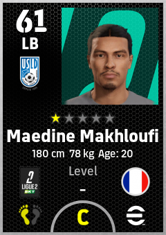 . Maedine Makhloufi is a Left Back footballer from France who plays for Usl Dunkerque in eFootball 2026.