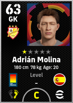 . Adrián Molina is a Goalkeeper footballer from Spain who plays for Vallecas Br in eFootball 2026.
