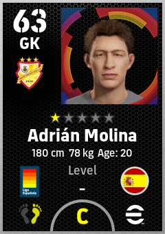 . Adrián Molina is a Goalkeeper footballer from Spain who plays for Vallecas Br in eFootball 2026.