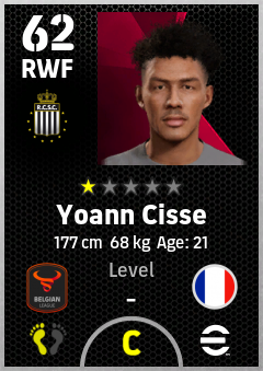 . Yoann Cisse is a Right Wing Forward footballer from France who plays for Charleroi Zw in eFootball 2026.