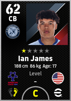 . Ian James is a Center Back footballer from United States who plays for Kansas City Bw in eFootball 2026.