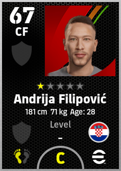 . Andrija Filipović is a Center Forward footballer from Croatia who plays for Free in eFootball 2026.