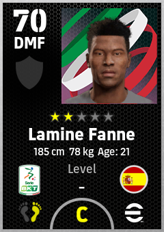 . Lamine Fanne is a Defensive Midfielder footballer from Spain who plays for Pescara Ba in eFootball 2026.