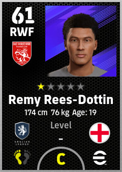 . Remy Rees-Dottin is a Right Wing Forward footballer from England who plays for Bournemouth Rb in eFootball 2026.