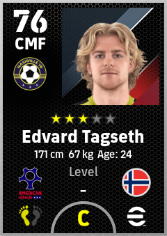 . Edvard Tagseth is a Center Midfielder footballer from Norway who plays for Nashville Yb in eFootball 2026.