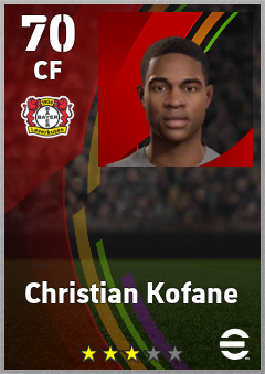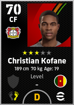 . Christian Kofane is a Center Forward footballer from Cameroon who plays for Bayer 04 Leverkusen in eFootball 2026.