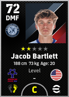 . Jacob Bartlett is a Defensive Midfielder footballer from United States who plays for Kansas City Bw in eFootball 2026.