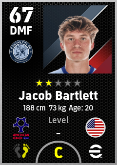. Jacob Bartlett is a Defensive Midfielder footballer from United States who plays for Kansas City Bw in eFootball 2026.