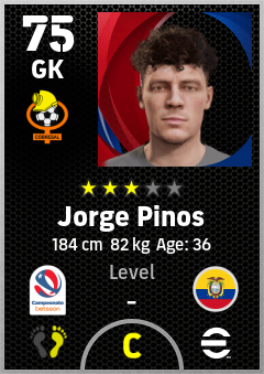 . Jorge Pinos is a Goalkeeper footballer from Ecuador who plays for El Salvador Bn in eFootball 2026.