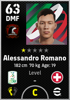 . Alessandro Romano is a Defensive Midfielder footballer from Switzerland who plays for La Spezia B in eFootball 2026.