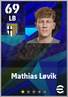 . Mathias Løvik is a Left Back footballer from Norway who plays for Parma Calcio 1913 in eFootball 2026.