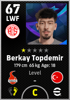 . Berkay Topdemir is a Left Wing Forward footballer from Türkiye who plays for Antalyaspor in eFootball 2026.