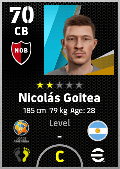 . Nicolás Goitea is a Center Back footballer from Argentina who plays for Rosario Rn in eFootball 2026.