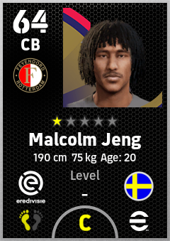 . Malcolm Jeng is a Center Back footballer from Sweden who plays for Feyenoord in eFootball 2026.
