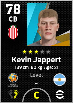. Kevin Jappert is a Center Back footballer from Argentina who plays for Barracas Rb in eFootball 2026.