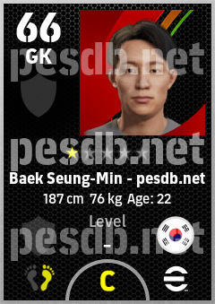 . Baek Seung-Min is a Goalkeeper footballer from Korea Republic who plays for Free in eFootball 2026.