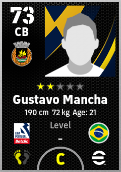 . Gustavo Mancha is a Center Back footballer from Brazil who plays for Rio Ave Fc in eFootball 2026.
