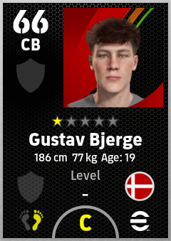 . Gustav Bjerge is a Center Back footballer from Denmark who plays for Free in eFootball 2026.