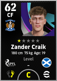 . Zander Craik is a Center Forward footballer from Scotland who plays for Kilmarnock Fc in eFootball 2026.