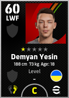 . Demyan Yesin is a Left Wing Forward footballer from Ukraine who plays for Free in eFootball 2026.