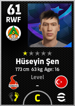 . Hüseyin Şen is a Right Wing Forward footballer from Türkiye who plays for Corendon Alanyaspor in eFootball 2026.