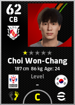 . Choi Won-Chang is a Center Back footballer from Korea Republic who plays for Jeju O in eFootball 2026.