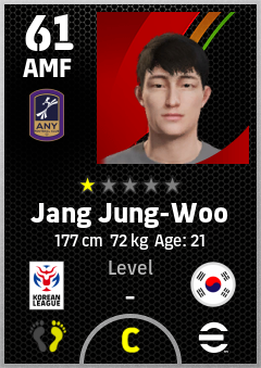 . Jang Jung-Woo is a Attacking Midfielder footballer from Korea Republic who plays for Anyang P in eFootball 2026.