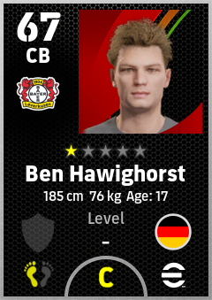 . Ben Hawighorst is a Center Back footballer from Germany who plays for Bayer 04 Leverkusen in eFootball 2026.