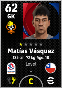 . Matías Vásquez is a Goalkeeper footballer from Chile who plays for El Salvador Bn in eFootball 2026.